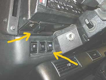 One of the things that sets an ECR built Defender apart is the switch gear we use. In most shops they stuff goofy radio shack switches all over your nice original interior. Here at ECR we only use correct fitting and looking switches to retain a factory look, even with add on equipment. The arrow on the LH side points to the master arm switch for the ARB air compressor, nicely tucked away in a factory location. The RH arrow points to the Aux #2 lamp switch that controls the 3 Hella 4000 lights. The switch is illuminated with the #2 lighting logo so that it looks factory and it fits the wiper motor cover perfectly.