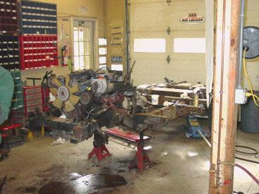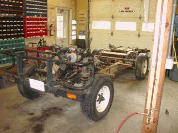 This image shows the body of the 110 starting to be lifted away from the chassis and running gear. This saves hundreds of man hours, and many parts, and will allow us to quickly set up the new galvanized chassis and the new Stage II suspension system. The 110 will also be getting numerous upgrades such as a full NRP stainless exhaust system, new tires and much more.