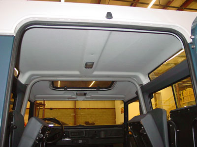 The roof has been removed from the body so that it can be sealed up. It is far too common that the seams in the Defender roofs will leak, like the ones on this truck do. This causes mold, mildew and headliner de-lamination, as well as water inside the truck when it rains.