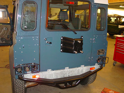 Here you can see the completed 1997 NAS Defender 90 Station Wagon all cleaned up and ready for transport to its owner in CA. There it will give faithful service for many, many years with all the long term upgrades we have built into the Rover. Items like LED tail lights, a galvanized frame, a ROX alloy skid plate, stainless brake and fuel lines and more will all help help this Rover last for the duration.
