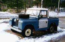 These "in progress" images show this upgraded 88 that is now backwith its owner (who bought it new in 1966) in North Carolina. The Roverhas been fully restored and upgraded with a galv. coil chassis, 4 wheeldisc brakes, a Defender Arles Blue paint job, alloy wheels, wheel flares,heated windscreens, Mansfield heater, inertia seat belts, H.O. 2.25 gasengine, Overdrive, etc. etc.