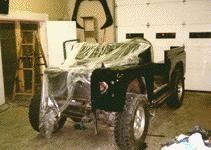 Here the damaged fender skin and bumper have been removed. With ECR's Paint and body facility the new fender skin is already being painted and will be ready quicker than Rover shops that have to look outside their own walls for paint and body work. Notice the new ARB winch mount bumper has already been installed.