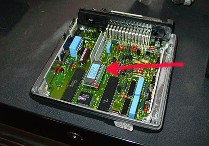 To make the EFI system understand that it has a new 4.6 to work with, instead of the old 3.9 we have added a new Tornado chip to the 14CUX ECU (see red arrow). This will help the engine put out the power and torque that a 110 Wagon needs and also improves the drivability of the EFI system.
