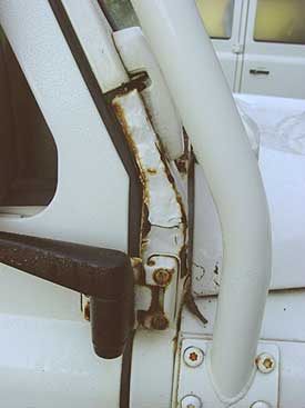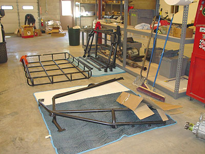 This image shows the safari cage just back from powder coating. All the threads will now be cleaned in preparation for installing the cage onto the 110.