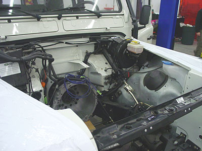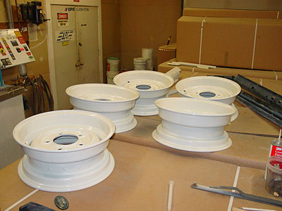 This image shows more "newness". The new steel wheels have been epoxy primed and painted and are ready for the new tires. In these build ups we don't mean the rims have been repainted, we mean we install new rims with new paint.