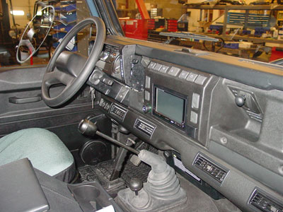 This images shows the dash and the Alpine unit fully assembled and ready for the customer. This is the first time we have put a double DIN head unit into a Defender and we think it came out pretty stock looking.