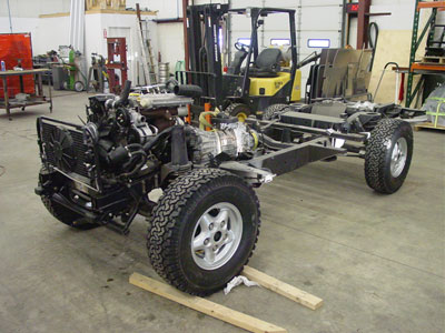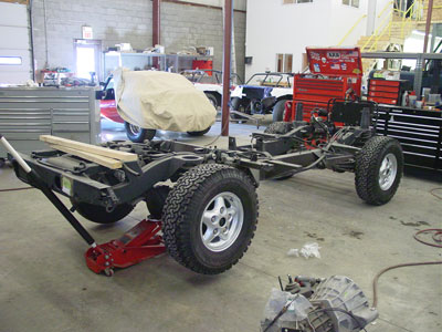 Here you can see the NAS 110 really coming together. The wiring is all in place and the drive-train has been test run. The safari cage has been zinc and powder coated and installed as well as the roof basket. The rear seats are in place and soon the rest of the interior will go into place.