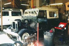 This 88 is getting everything from a new galv. frame to a full inside and out, bare metal, Bronze Green paint job. All the bodywork will be done as well as all new galv. trim. It will also be converted from RHD to LHD as well as a few other options. Here the body is being taken apart and moved to ECR's paint and body shop for the bodywork.
