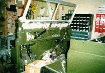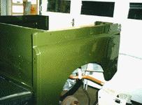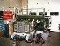 Here the steering conversion to LHD is complete and the other systems are being restored and installed. Notice the military duel fuel tanks and other military options. This 88 will be built in full military dress, military lighting to correct Bronze Green paint.