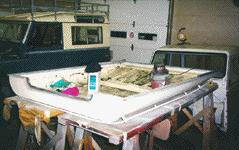 While the mechanical systems are being installed and assembled in our mechanical shop, the paint shop is hard at work on the Limestone parts of the Rover. The roof has been stripped of all its parts and will be prep'd and painted as will the roof sides. This will include new headliner, window tracks and all seals. This 88 will also be getting a conversion to rear tailagate/lift gate from rear door so that the soft top can be easily fitted in the summer.