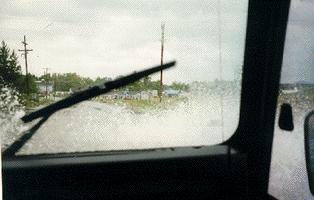 These two images show a recent on road trip that found us in Northern Maine with a river that had washed out a bridge and the road, flooded its banks and covered the road completely! Fortunately we were in a Tdi Defender so it meant we went right through. Yes, that is water breaking over the hood!!