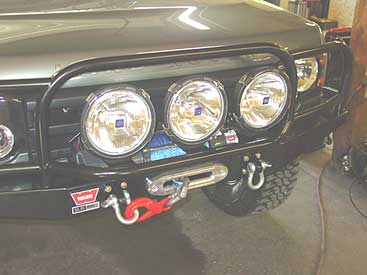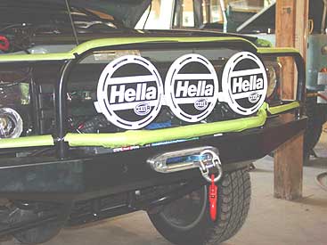 In the front of the Disco we added clear lexan covers to the Hella 4000s to protect them from on and off road hazards. A simple install, but it just might save some big dollar lights from harm.