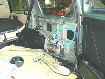 Once the system was tested we then reinstalled the interior panels to give the air system a totally hidden look, it looks like a stock Disco II, but it isn't.