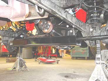 One more thing to notice in this image is that the rear ARB locker has been installed into the differential with a new 4.11 ring and pinion. We also eliminated the factory rubber drive coupler in favor of a standard U-joint type drive flange. The new CV rear driveshaft will be installed soon.
