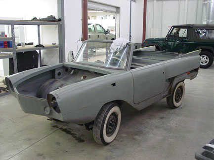 Then a few weeks ago my son told me I better get working on the Amphicar because he wanted to go for a ride in it. That was the trigger, I have to get going on this project. It has to get done. So to that end I have brought the Bismark from storage at home here to the shop. So now that it is in front of me every day I will get cracking on it.