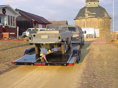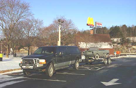 4 hours later, and what seemed like all of MA and NH's road sand and salt allotment all over my rig, I arrived back home safely with the Amphicar. As much as I wanted to get the Amphicar cleaned up and into the garage, the wind was blowing hard and it was freezing outside with wind chills in the -30 range (ah... winter in Maine). The new toy was going to have to wait, so I went inside to relax. As most of you who have done projects like this know, its hard to leave a new project alone. Relaxing lasted about 15 minutes then I bundled up and headed outside to brave the cold to unload the Amphicar and get all the parts out of the truck.