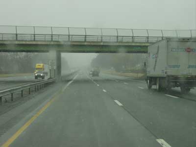 On the NY thruway outside of Albany it started to snow like crazy. The snow did not stick to the roads but it did drop visibility down quite a bit so I had to back down from my normal speeds to deal with the snow. The snow was off and on all through the upstate New York corridor, but as I went to college in Rochester, I knew this lake affect snow can make come and go at a moments notice, even if the weather report is for clear skies, as was the case on this day.