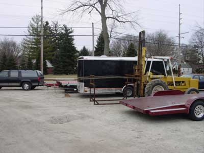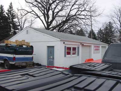 Its first thing Friday morning and I arrive at the trailer place a little after 8am. Unfortunately the sign on the door says they open at 9am so I took a nice little driving tour of Valparaiso, IN and went to the grocery store to stock up and supplies. I arrived back at the tiny and very dirty trailer shop about 9:15am. No one was around. 9:30, no signs of life. At 9:45 I called Rob and asked him what was up and I actually got him on the phone, wow. Before I left Maine I wanted to confirm a few things with Rob so I had emailed him a bunch of times and left messages and paged him, but never got a return to my requests for a number of days. I love guys like this... when the money is on the line everything has to be FedEx'd and ASAP, but when I needed information after he had my money, he was deadly slow to respond, if he responded at all. Rob told me he would call the guy and get him there. About 10:30am the owner of this shop showed up and helped me get my trailer.