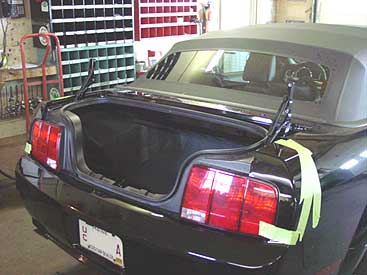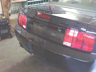 Here you can see the completed set up. A subtle change, but it gets the Mustang one step away from "showroom stock" and one more step towards custom ride. Now if I could only afford that new supercharger and the Halibrand rims...