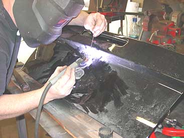 After we made the plugs we tig welded them in place to fill all the holes with metal. Next we'll get the deck lid primed and painted and get it back on the car. Once that is complete we'll install the freshly painted Cervini rear spoiler that will replace the factory winglett.