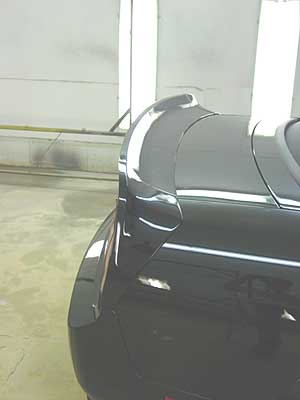 This image shows the rear spoiler in place. Notice that it covers the holes where the factory winglet used to be, and actually uses 2 of those old holes to screw the center piece down.