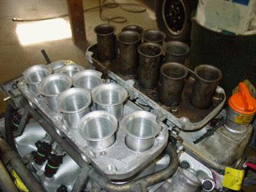 On the intake side of this Pursuit 4.6 you can see the difference between our intake system (left) and the stock 4.2 intake system (right). The custom ported intake and heads along with the velocity stacks all mean more air, and more air means more power. The intake system is just one of the many tricks we do to the Pursuit to be able to make smooth and reliable 270 plus HP from the 4.6.