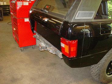 The body of the Rover is also getting a new paint job in the factory Black. There are some minor dings and dents to take care of, and we ran into some typical rust on the rear quarter sections that hold the tail lights. These corner pieces are made out of steel and are prime to rust in the seems near the tailgate. We will be taking these panels off in order to media blast them back to white metal and prime them inside and out. This will cure the rust issue and mean that it won't come back anytime soon.