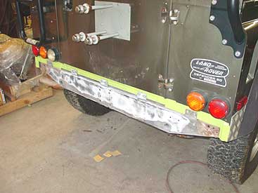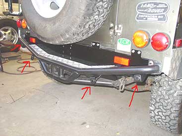 As with most 90s the Rover has some minor rust issues. The door hinges on this 90 are getting quite rusty and the rear cross-member needs a fresh coat of paint to look good again. The rear cross-member has been painted once already, but the shop that did it did not remove the bumper when they did the work, so rust is starting to bleed out from the areas behind the bumper. To do a complete fix we have removed the bumper and all the surface rust off the rear crossmember.