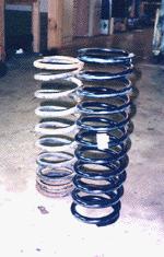 You can see some of the increase we'll get just by comparing the stock springs with the new units. Installation of the kit was relatively straight forward (although some modifications are always needed in this type of work) and gave our Rover quite a lift. When you do a lift such as the Stage III you have to consider the entire vehicle. Do you now need to change the drive shaft angle? Do you need to change the brake line length?